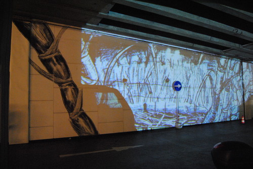 «Desenho com 5 metros de altura por 42 metros de largura (aproximadamente), a pastel, onde se equaciona de um modo particularmente subtil a actual cadeia de produção da cana-de-açúcar e a escala da sua economia, nomeadamente no que diz respeito à produção de etanol. Mas, de uma forma ainda mais subliminar, podemos ver nesta obra uma referência ao passado, onde se cruzam as histórias do Brasil, de Portugal e de África. Por outro lado, a tradição de intervenção social da história das artes latino-americanas, feita através do muralismo, é um aspecto fulcral desta opção artística.» (in Jornal Próximo Futuro nº4)