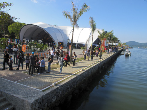 A primeira pergunta: Parece que Itaparica é o cenário dos livros. Seria uma metáfora do Brasil? Mas ele diz que não sabe, que acaba sendo assim. As ilhas são fictícias. Esse ambiente faz parte da sua formação, é o que conhece. Ele diz ter uma certa insegurança em escrever sobre o Rio. No final os textos saem com cara de Itaparica.
